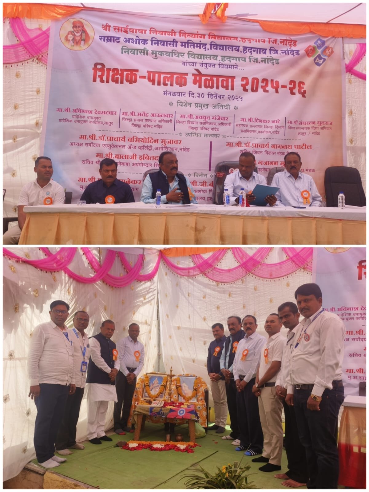 हदगाव प्रतिनिधी दि.३१ :- साईबाबा निवासी दिव्यांग विद्यालय, सम्राट अशोक निवासी मतिमंद विद्यालय तसेच निवासी मूकबधिर विद्यालय, हदगाव (जिल्हा नांदेड) यांच्या संयुक्त विद्यमाने मंगळवार, दि. ३० डिसेंबर २०२५ रोजी विद्यालयाच्या प्रांगणात भव्य पालक मेळाव्याचे आयोजन करण्यात आले होते. विशेष गरजा असलेल्या विद्यार्थ्यांच्या सर्वांगीण विकासासाठी पालक–शाळा समन्वय अधिक दृढ करण्याच्या उद्देशाने हा मेळावा घेण्यात आला.