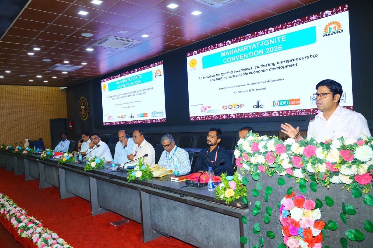 जिल्हाधिकारी कार्यालयाच्या नियोजन भवन येथे आज “महानिर्यात इग्नाईट कन्व्हेंशन २०२६” अंतर्गत आयोजित कार्यशाळेचे उद्घाटन जिल्हाधिकारी राहुल कर्डिले यांच्या हस्ते झाले. या कार्यशाळेस जिल्हा उद्योग केंद्राचे महाव्यवस्थापक अमोल इंगळे, डाक विभागाचे अधिकारी अक्षय कुलकर्णी, न्यू इंडिया इन्शुरन्स कंपनीचे चांगदेव शेळके, महाराष्ट्र ग्रामीण बँकेचे अधिकारी पी. डी. मुळे, जिल्हा अग्रणी बँक अधिकारी श्री. सोनकांबळे, ए.यू. स्मॉल फायनान्स बँकेचे व्यवस्थापक अमरजितसिंघ, भारतीय स्टेट बँकेचे अधिकारी सौरभ कुमार, नांदेड जिल्हा औद्योगिक संघटनेचे अध्यक्ष हर्षद शहा, आनंद बिडवई, निर्यातदार निलेश देशमुख तसेच निर्यातक्षम उद्योगांचे उद्योजक, नवउद्योजक व विविध शासकीय विभागांचे प्रमुख उपस्थित होते.