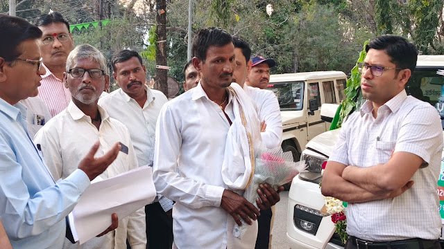 आज जिल्हाधिकारी कार्यालयात महारेशीम अभियान २०२६ अंतर्गत फिरत्या जनजागृती वाहनास जिल्हाधिकारी राहुल कर्डिले यांच्या हस्ते हिरवी झेंडी दाखवून शुभारंभ करण्यात आला. यावेळी परिविक्षाधीन आयपीएस अधिकारी एन. एम. शशीकांत, निवासी उपजिल्हाधिकारी किरण अंबेकर, उपजिल्हाधिकारी संजीव मोरे, उपजिल्हाधिकारी श्री. कोळेकर, उपमुख्य कार्यकारी अधिकारी पंचायत मनरेगा अमित राठोड, रेशीम अधिकारी पी. बी. नरवाडे, तांत्रिक अधिकारी कांचन जाधव, रेशीम शेती करणारे शेतकरी व जिल्हाधिकारी कार्यालयातील अधिकारी कर्मचारी उपस्थित होते.